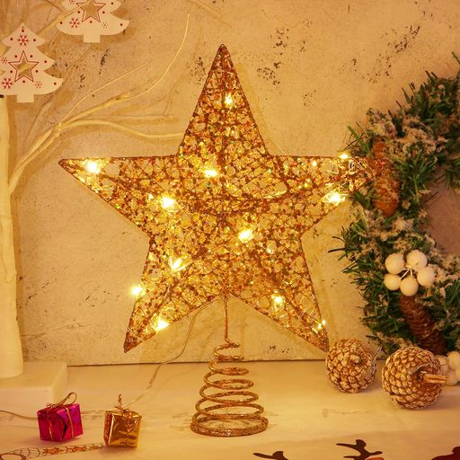 DUOLEIMIツリートップスタークリスマストップスター25cmクリスマスツリー星クリスマス飾りデコレーションスターゴールド