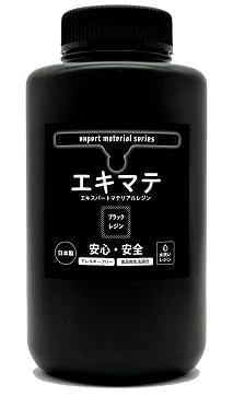日本製光造形 3D プリンタ専用安全水洗いレジン (エキマテ) (ブラック, 1,000g入りボトル)