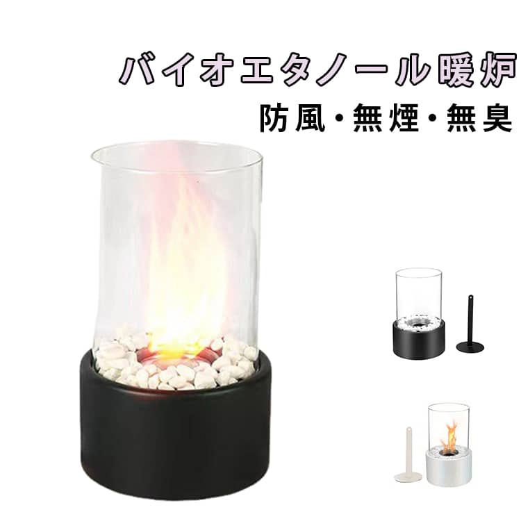 キャンプ 卓上エタノール暖炉 クリーン燃焼 無臭 無煙 小型 グラスファイヤー ウィンドガード付 卓上 円形 バイオエタノール暖炉