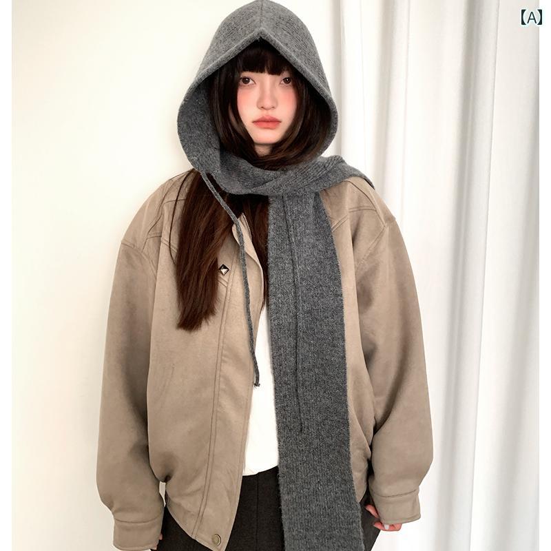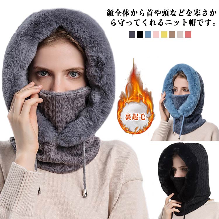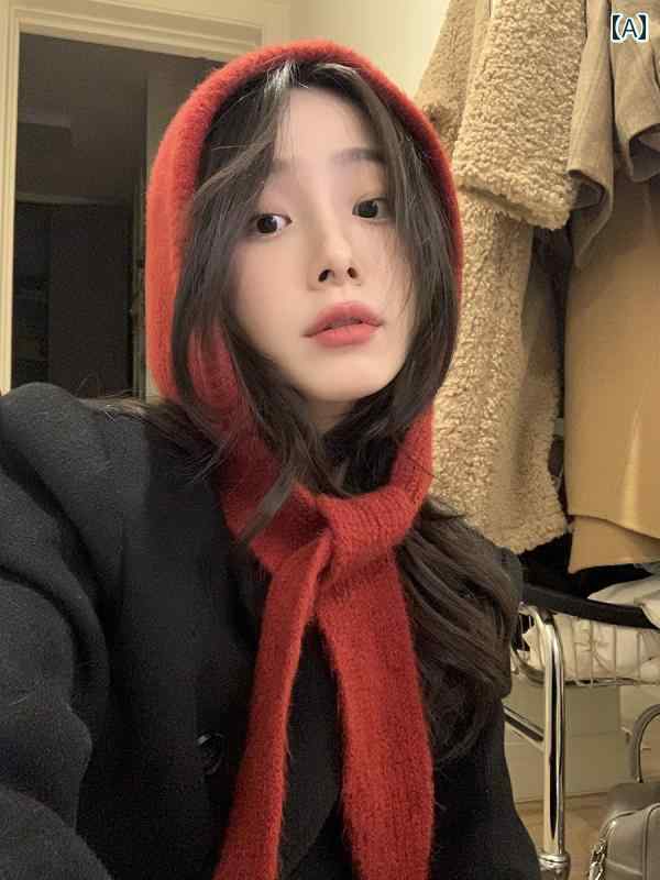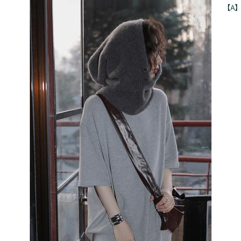 バラクラバ おしゃれ 帽子 女子 バラクラバ ~ ハイエンド 暖かい 耳 保護 ニット ウール 帽子 一 体型 ネック スカーフ 付き