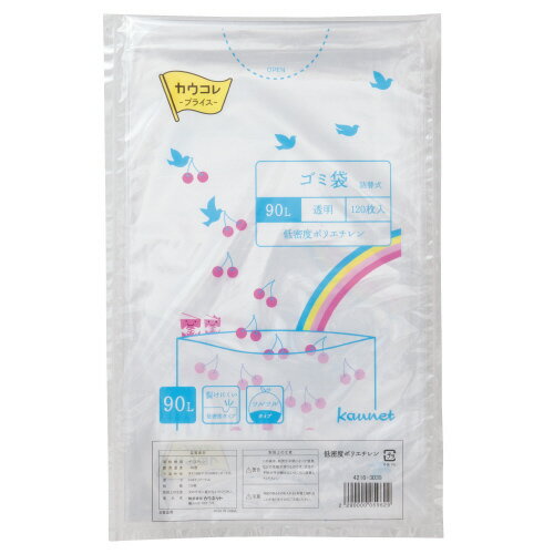 低密度薄口ゴミ袋 詰替用 90L 透明 120枚4216-3039【カウネット】