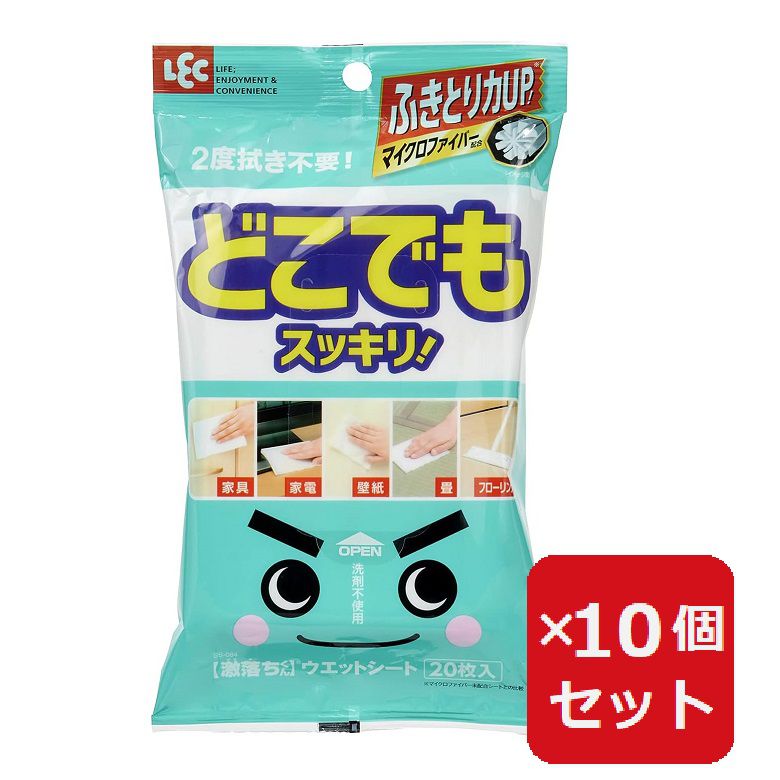 激落ち どこでもウェットシート ウエットシート 20枚入 掃除用品 掃除用シート マイクロファイバー レック LEC 【×10個セット】