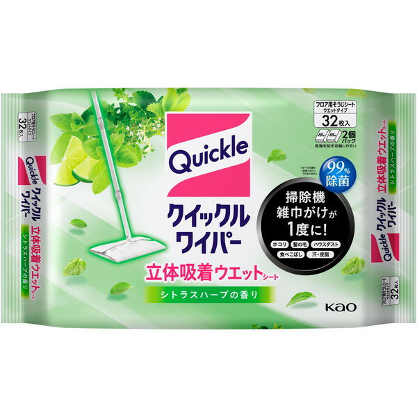 花王 クイックルワイパー 立体吸着 ウエットシート シトラスハーブ(32枚入)【正規品】