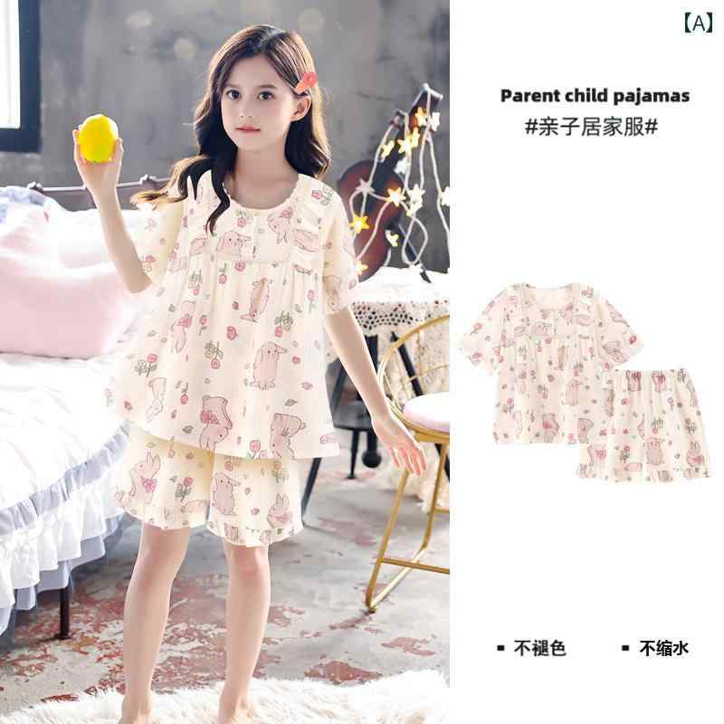 キッズ パジャマ ルームウェア 子供服 夏 v ネック ガーゼ 女の子 薄手 半袖 チューリップ スイートホーム セット
