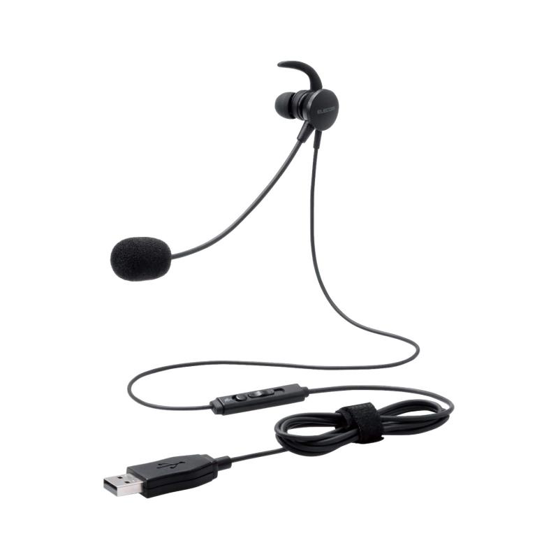 エレコム ヘッドセット マイクアーム付 USB インナーイヤー 有線 片耳 ブラック HS-EP16UBK