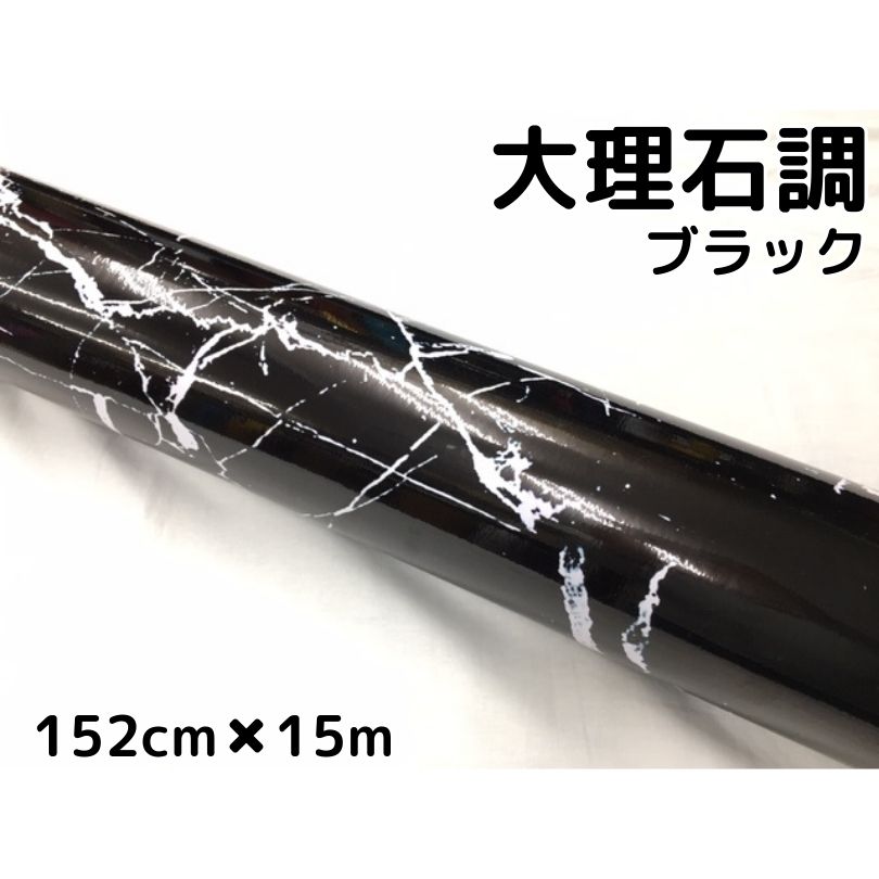 艶あり大理石調カッティングシート ブラック 152cm×15m 自動車内装パネル 家具テーブルリメイクシート 耐熱耐水裏溝付ラッピングシート