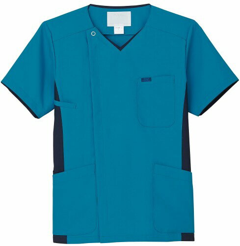 (フォーク) スクラブ・白衣 7025SC メンズ ターコイズ×ダークネイビー LL (日本サイズLL相当)