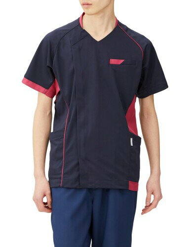 (アシックス) クラシック スクラブ兼用半袖 ダークネイビー× ダークネイビー×バーガンディ