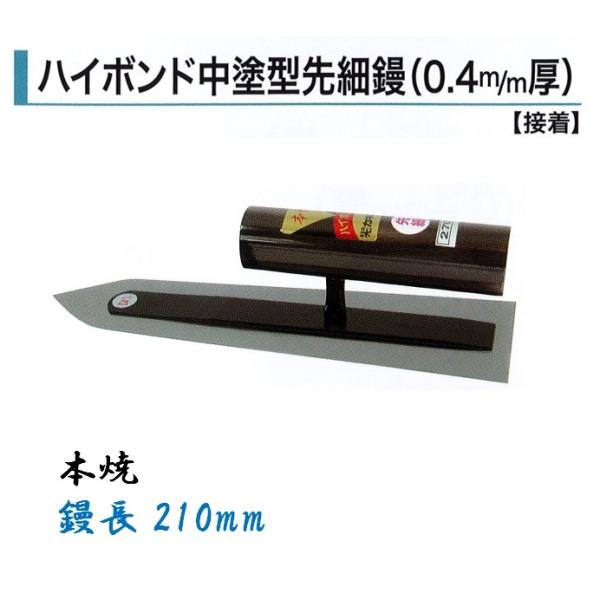 カネミツ ハイボンド中塗型先細鏝 210mm 0.4mm厚 本焼 左官コテ