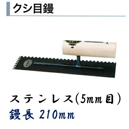 カネミツ タイル用鏝 210mm 5mm目 ステンレス クシ目鏝 左官コテ