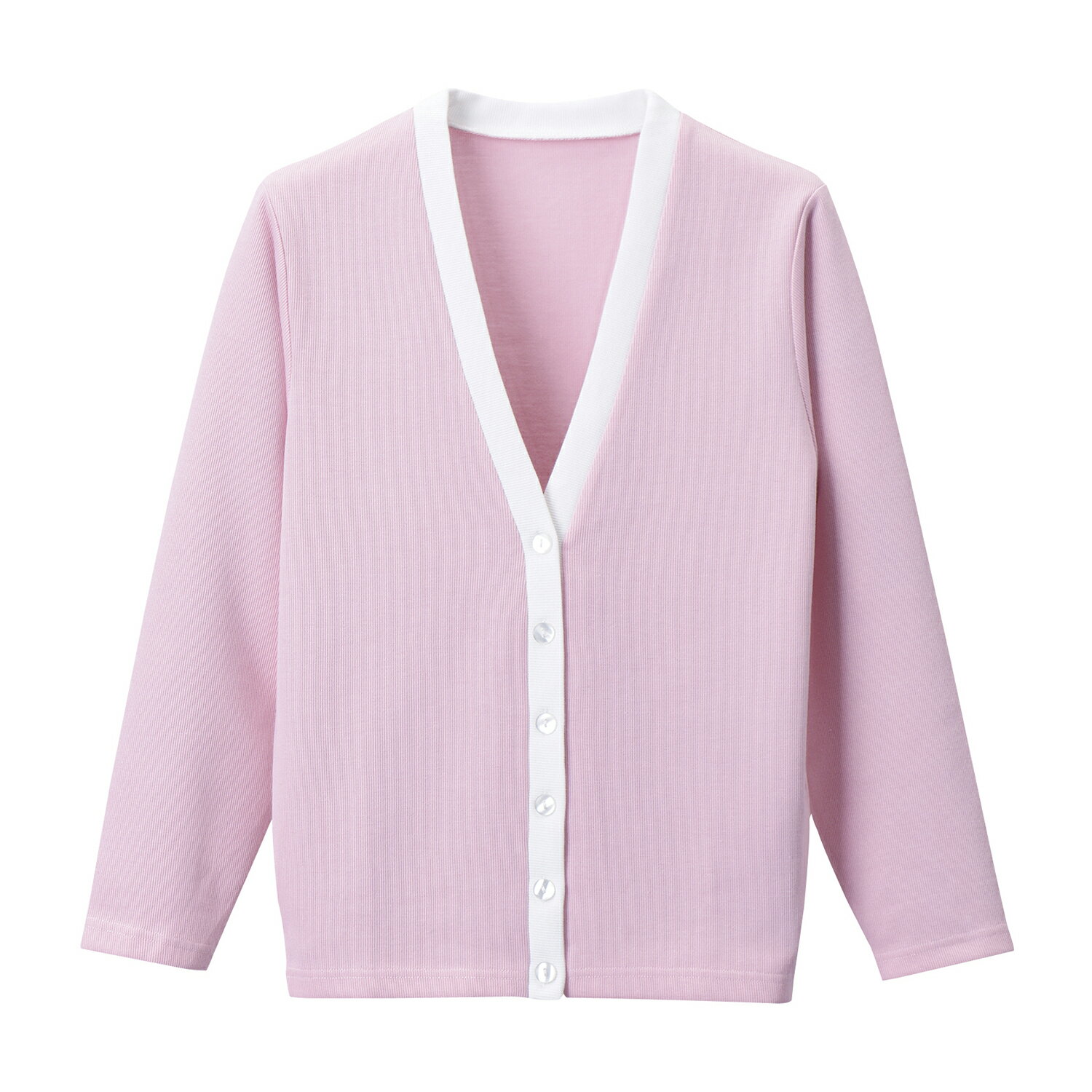 カーディガン(ロング丈) C-10 ピンク×ホワイト サイズ:M
