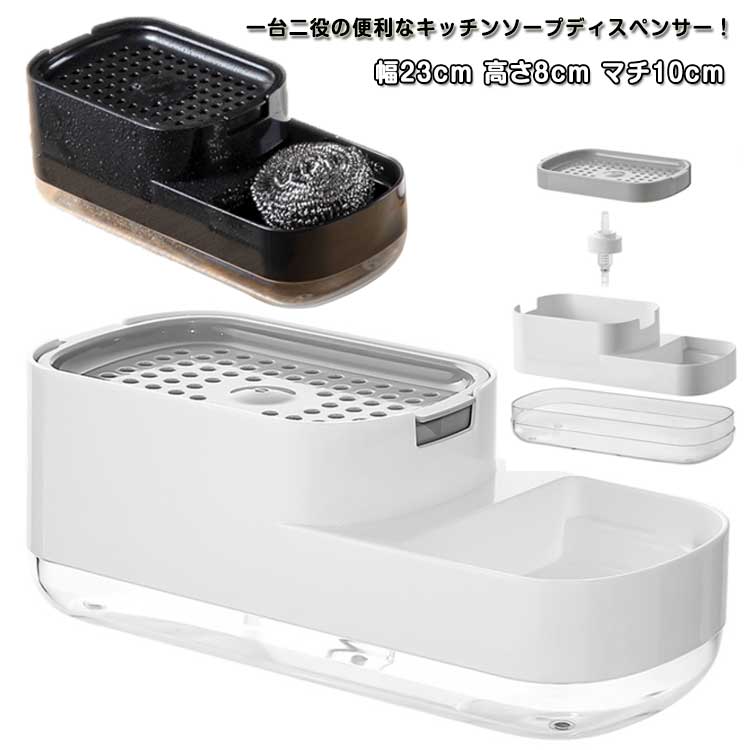 キッチン 洗剤ディスペンサー スポンジホルダー 一体型 詰め替え可能 透明 手動プレス シンク周り整理