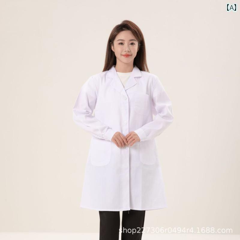 作業服 美容 医療 女性用 ボタン 袖 Vネック ナース ユニフォーム 長袖 白衣 作業着 白 病院 クリニック 男性用 ドクター
