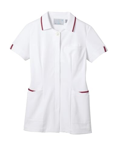 (モンブラン) ナースジャケット 半袖 白/バーガンディ