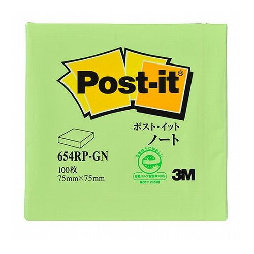 【20個セット】 3M Post-it ポストイット 再生紙 ノート グリーン 3M-654RP-GNX20(代引不可)【送料無料】
