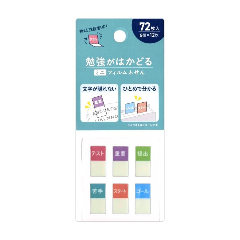 ふせん 付箋 ミニフィルム 勉強がはかどる かわいい おしゃれ 時短 勉強 学校 6種×12枚 72枚入