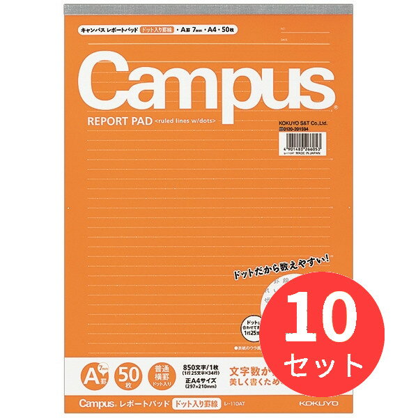 【10冊セット】コクヨ レポートパッドドット入りA4 A罫薄口50枚 レ-110AT【まとめ買い】