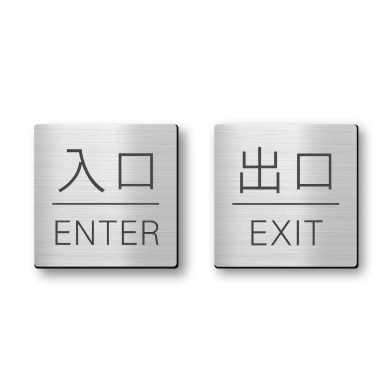 かたちラボ 入口 出口 ドアプレート サイン 入口 ENTER 出口 EXIT 四角 シルバー ステンレス調 シール式 日本製