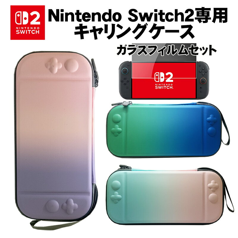 Nintendo Switch2対応 グラデーションキャリングケース ガラスフィルムセット 軽量 カバー おしゃれ 大容量 収納ケース