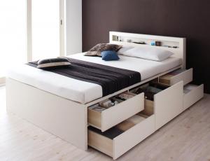 お客様組立 棚・コンセント付きチェストベッド 薄型スタンダードボンネルコイルマットレス付き セミダブル