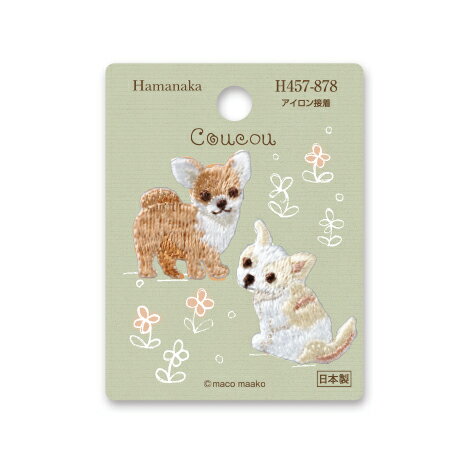 ハマナカ ワッペン アップリケ クークー チワワ 犬 H457-878 ミニ刺しゅうワッペン アイロン接着