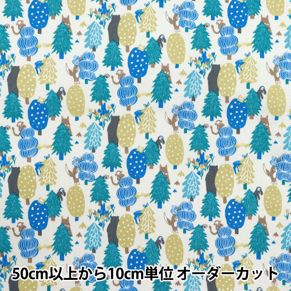【数量5から】 生地 『ツイル 森のかくれんぼ ブルーグリーン CHTW-HID-YEBL』