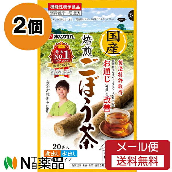 【メール便送料無料】あじかん 国産焙煎ごぼう茶 (20包入) 2個セット <機能性表示食品 お通じ改善 健康茶>