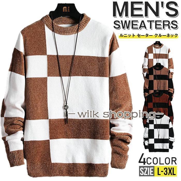 ニット ケーブルニット セーター クルーネック メンズ 切り替え ニットソー 長袖 ニットセーター 防寒 春物 秋冬