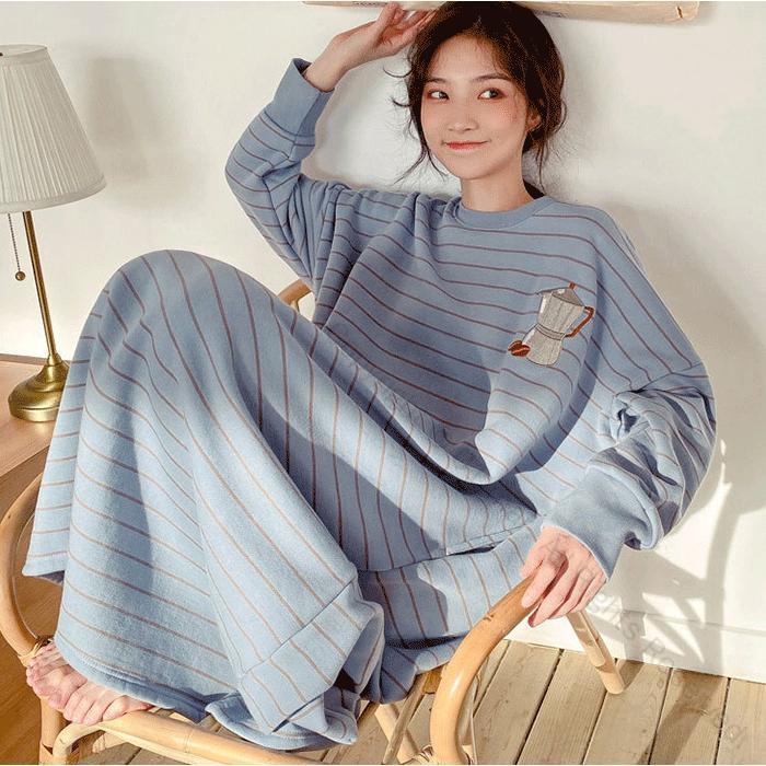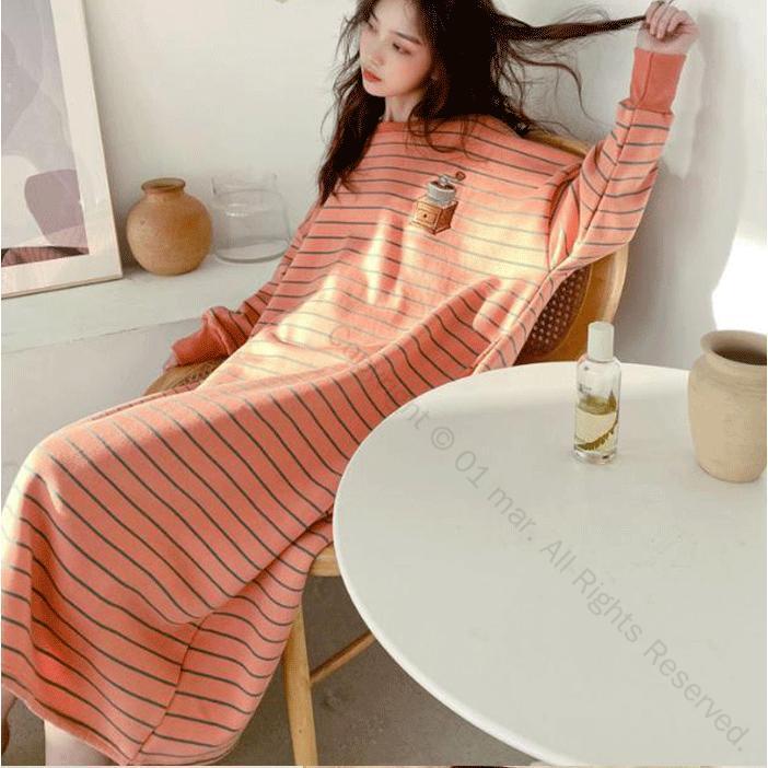 ルームウエア レディース ワンピース パジャマ 春秋冬対応 部屋着 長袖 ボーダーデザイン カジュアル ロング丈 かわいい着心地抜群ファッションアイテム