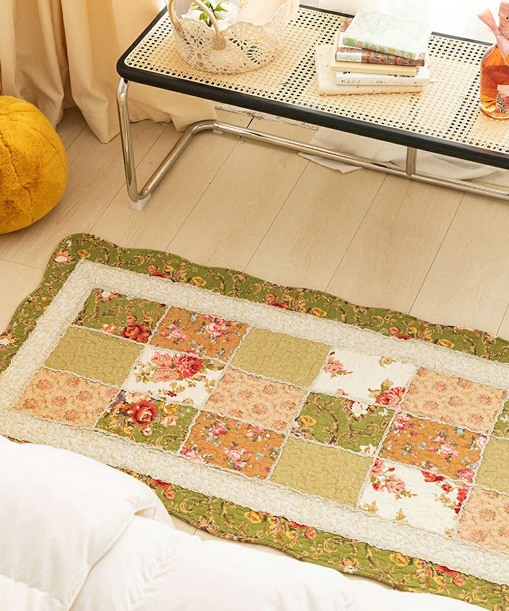 花柄ガーリーキルティングマット カーペット・ラグ 綿100% /アイモハ(aimoha)