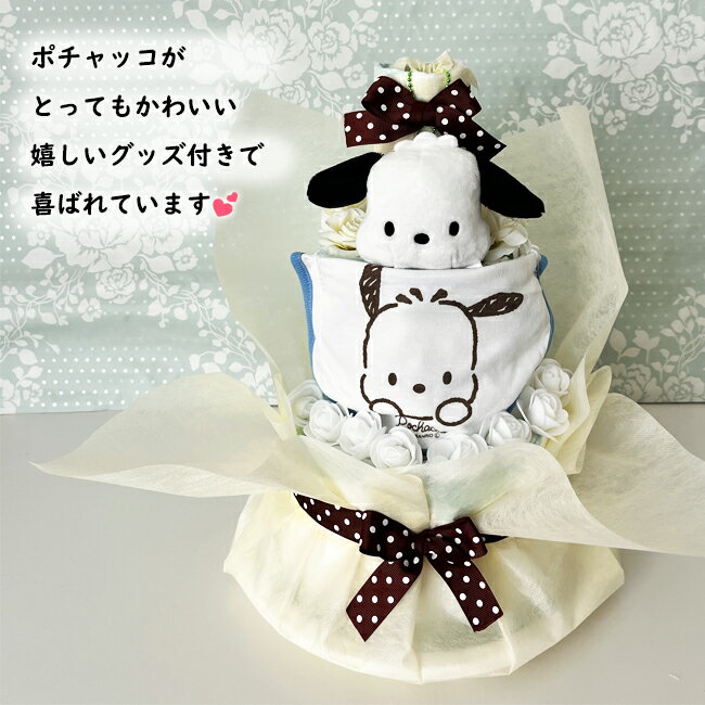 ポチャッコ おむつケーキ 出産祝い オムツケーキ サンリオ ベビースタイ よだれかけ 犬 わんちゃん ぽちゃこ 土曜営業 日曜営業 土日営業【送料無料】【RCP】