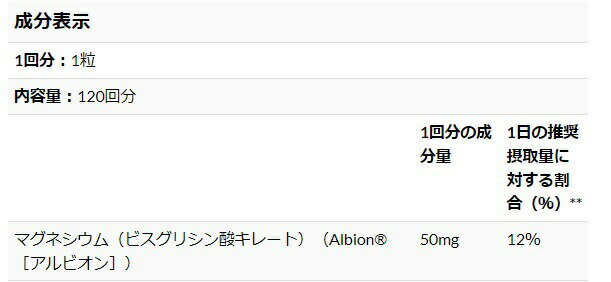 お召し上がり方 1日1粒を目安にお召し上がりください。 Jigsaw Health, MagPure Glycinate, 120 CapsulesMagPure(マグピュア)グリシン酸マグネシウムは、Albion Laboratories(アルビオンラボラトリーズ)社が独占製造する、栄養が身体になじんでくれるようなビスグリシン酸キレートを使用しています。 MagPureマグピュア)グリシン酸は、マグネシウムだけの栄養がほしい方のために特別に開発された製品です。1粒あたり純マグネシウム50mgが、グリシン酸マグネシウムとして含まれています。 穏やかな毎日を送りたい方のためのマグネシウム栄養補助食品/ 遺伝子組み換え原料不使用/ グルテンフリー/ Albion Minerals(アルビオンミネラル)/ 大豆不使用/ ヴィーガン/