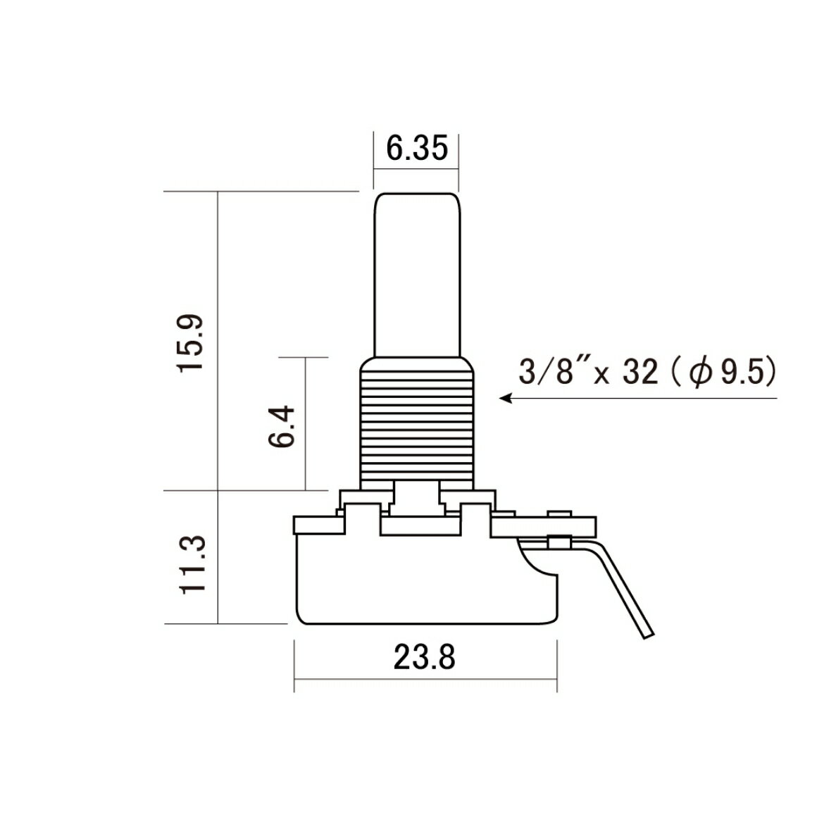 【SCUD】【ポット】CTS製ポット インチサイズ ショートソリッドシャフト 1MΩ Aカーブ CTS-A1M-SS