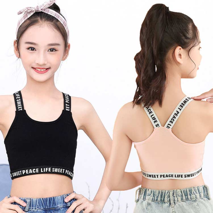 中学生 ジュニアブラ 英字ロゴ インナー 女の子 2枚セット 子供 下着 肌着 ノーワイヤー ジュニアブラ ハーフトップ ダンスインナー 薄手 スポーツブラ キッズブラ シンプル 小学生 高学年 ブラジャー ファーストブラ ダンス かわいい カジュアル