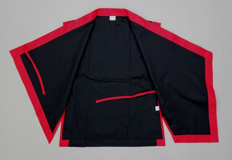 袖無し法被【太鼓・よさこい】黒地に赤衿 子ども小・中・大・特大・大人 [納得楽天価格 通販 オリジナル ハッピ 半纏 半天 はんてん 祭り 祭り衣装 お祭り用品 イベント 文化祭 学園祭]
