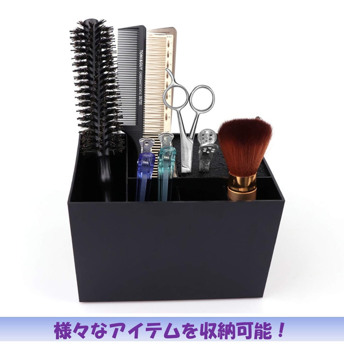 クシやハサミなど、美容師用の道具を収納できるキューブ型の収納ケースです。ハサミや櫛、クリップなどの小さなアイテムを数多く収納できます。底面に滑り止め用のゴムがついていますので滑らかなテーブルの上でも滑りにくいです。様々な理髪用アイテムをまとめて収納でき、簡単に取り出すことができます。プロのヘアスタイリストの商売道具からご家庭のヘアグッズの収納、ペットのトリミング道具の収納など様々な用途にお使いできます。その他小物入れとしても使用できます。ポケットの一つにはナイロンブラシが入っており、ケースのお手入れやカット後の毛髪を掃うのに活用できます。【サイズ】16.5×11.5×10.5 cmアマゾン倉庫より発送されます。 クシやハサミなど、美容師用の道具を収納できるキューブ型の収納ケースです。 ハサミや櫛、クリップなどの小さなアイテムを数多く収納できます。底面に滑り止め用のゴムがついていますので滑らかなテーブルの上でも滑りにくいです。 様々な理髪用アイテムをまとめて収納でき、簡単に取り出すことができます。プロのヘアスタイリストの商売道具からご家庭のヘアグッズの収納、ペットのトリミング道具の収納など様々な用途にお使いできます。その他小物入れとしても使用できます。ポケットの一つにはナイロンブラシが入っており、ケースのお手入れやカット後の毛髪を掃うのに活用できます。 【サイズ】16.5×11.5×10.5 cm アマゾン倉庫より発送されます。