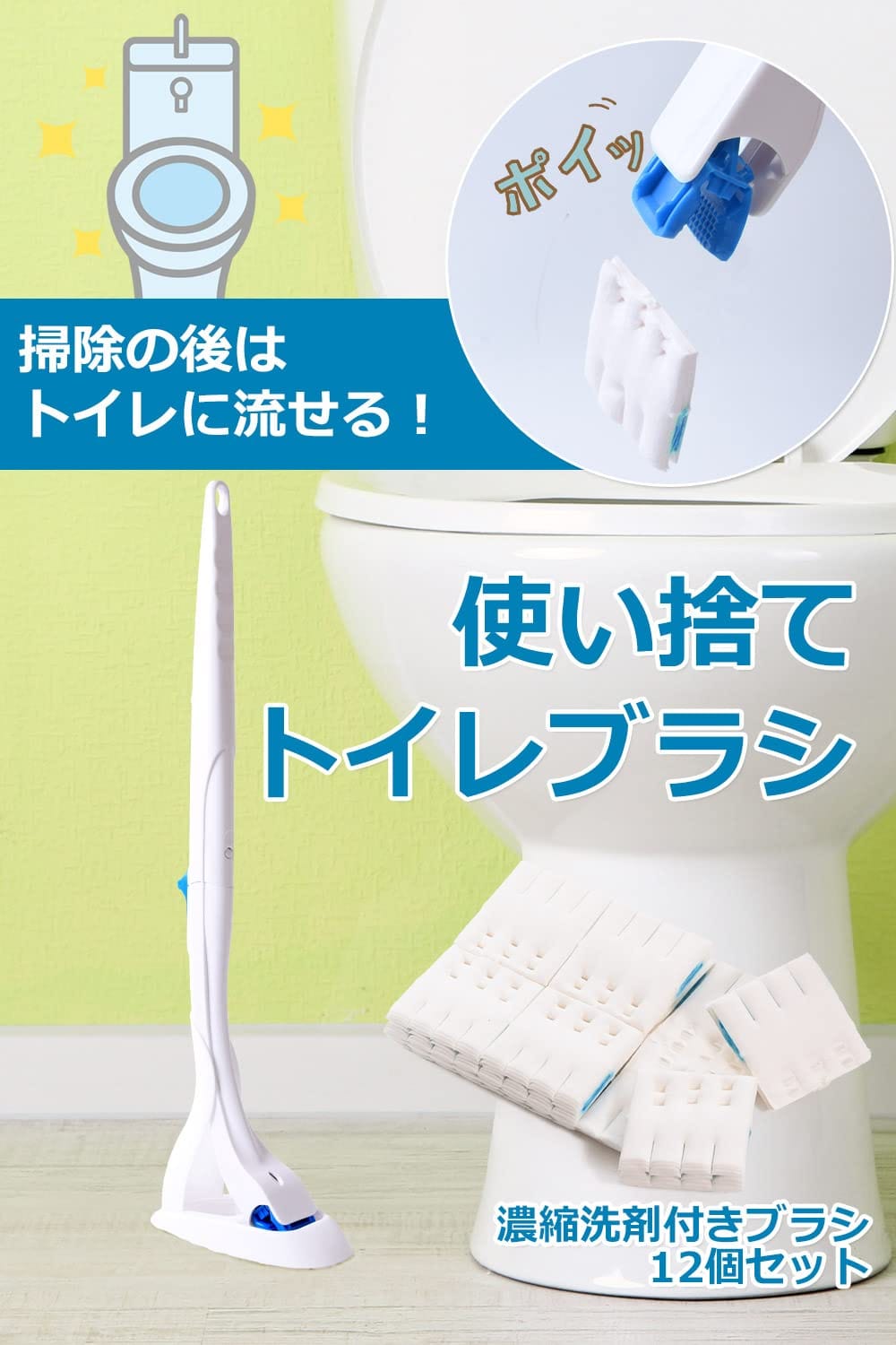 [WARAIKADO] トイレブラシ 使い捨て トイレ掃除 360° 壁掛け 収納簡単