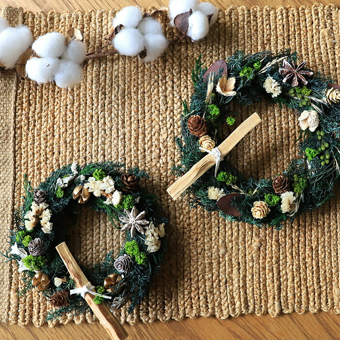 メーカー希望小売価格はメーカーサイトに基づいて掲載しています 商品情報 【商品名】クリスマス ホーリーリース パロサント/ Christmas Holy Wreath Palo Santo サイズ S:約φ130×D20mm M:約φ150×D30mm 素材 香木、ドライフラワー、プリザーブドフラワー 生産国 日本製、パロサント:エクアドル産 ブランド G:Land 商品情報 S:344-GL-CW-S(4589868903525) M:344-GL-CW-M(4589868903518) 注意事項 ・お使いのPC画面等や光の環境によっては、掲載の画像と実際の商品とで色の見え方が異なることもございます。ご了承ください。Christmas Holy Wreath Palo Santo / クリスマス ホーリーリース パロサント パロサントとロスフラワーのサステナブルなクリスマスリース 【森から届いたサステナブルな冬の贈り物】 南米原産の香木「パロサント」とロスフラワー(廃棄花)を使ったサステナブルなクリスマスリース。 パロサントはスペイン語で「聖なる木(Hooly Wood)」という意味を持ち、クリスマスの日に教会のミサで焚かれることもある神秘的な香木。 濃厚な香りがクリスマスにぴったりです。 ヒムロスギやコニファーなどの森の香りも相まってまるで森林浴をしているよう。 サイズはSとMをご用意しました。 自然の美と癒しの香りを感じるクリスマスリースで、サステナブルな祝日をお楽しみください。