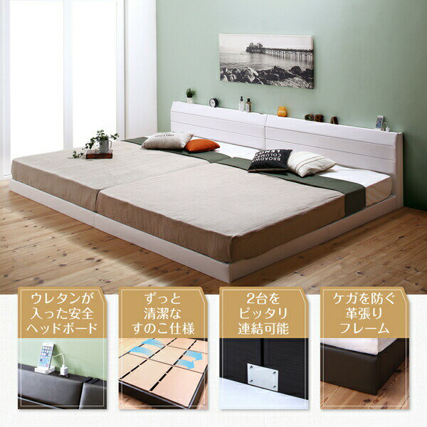 【日本製ベッド 連結ベッド 】 ファミリー 日本製ベッド 国産ベッド 棚付き コンセント付き ビニールレザー張り Familiena ファミリーナ ボンネルコイルマットレス付き ボンネルコイル ワイドK200 (シングルベッドx2分割・連結ベッド )