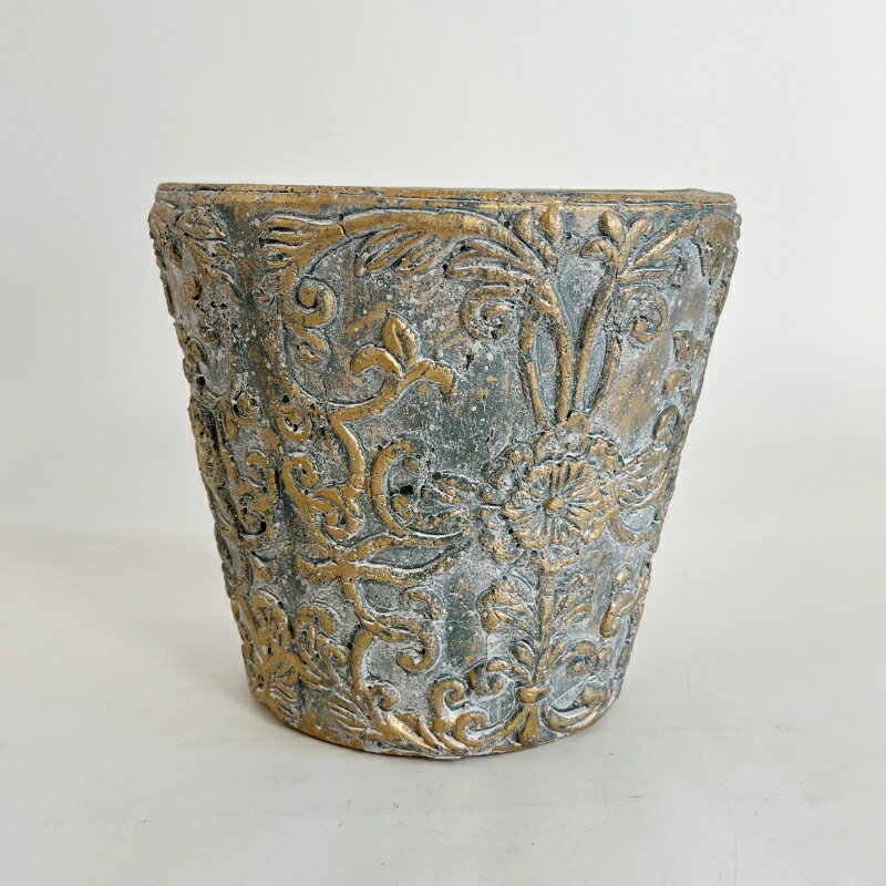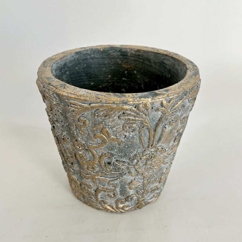 自宅の室内やお庭・オフィスなどお気に入りの植物との癒しの空間を、aarde(アールデ)の個性的でおしゃれな植木鉢で彩ってみてはいかがでしょうか?また、植木鉢はプレゼントとして贈った方のそばに置いてもらえることが多いです。記念日・誕生日・バレンタインデー・ホワイトデー・クリスマス・父の日・母の日・敬老の日などの定番のギフトイベントこそ、ご自身で選ばれた個性的な植木鉢とお気に入りの植物を組み合わせれば、大切な方への贈り物としてもきっと喜んでいただけるはずです! <<植木鉢/おしゃれ/陶器鉢/プランター/鉢/ガーデニング/園芸/観葉植物 多肉植物 塊根植物 サボテン向け>>*店舗販売もしておりますので在庫数は少なめに設定しております。 購入制限により、ご希望の数量がご入力いただけない場合でも、 在庫をご用意出来ることがございますのでお問い合わせ下さい。 サイズ S:Φ14cm × H14cm 口径Φ11cm / 深さ12.5cm L:Φ18.5cm × H17cm 口径Φ15cm / 深さ15.5cm *こちらは【Lサイズ】の商品購入ページ 備考陶器製・鉢底穴あり グレーを基調として、使い込まれたようなアンティーク加工が魅力的な陶器鉢です。表面の植物柄がとても可愛らしく柔らかい印象で、グリーンともよくマッチします。まさに癒しの空間にピッタリ!また、植物柄にはところどころゴールドカラーも施され、アンティーク鉢として非常に手が込んでいて、存在感抜群の一品です!開口部は円形、円すい型ラウンド形状です。 *ご注意:アンティーク商品のため、細かなキズや汚れ・くぼみ・色ムラ・カケ・付着物、多少のぐらつき、底穴付近の焼きヒビ等がある場合がございます。また、陶器鉢の性質上、模様・色味・サイズには若干の個体差が生じます。予めご理解の上、お買い求め下さい。 カラーは、存在感抜群の『グレー/ゴールド』をご用意。ナチュラルな空間にもシックな雰囲気にも相性が良い色味です。 サイズは、2種類をご用意。 【Sサイズ】 外径:約14cm × 高さ:約14cm 口径:約11cm / 深さ:約12.5cm (【Sサイズ】の商品ページはこちら) 【Lサイズ】 外径:約18.5cm × 高さ:約17cm 口径:Φ15cm / 深さ:約15.5cm *こちらは【Lサイズ】の商品購入ページです。
