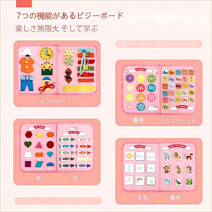 ※商品情報 原産国:中国 材質: ウール サイズ:約28*23*3 【21 IN 1 プレスクール学習アクティビティ】このトドラー用ビジーボードは、生活スキル、アルファベット、数字、形、色、動物、天気の学習ボードを含んでおり、すべてのトドラーが楽しんで学ぶことができます。アクティブかつ独立的な遊びを促進し、落ち着きのない依存的なトドラーを、自分で探索を楽しむ自立した子供に変える手助けをします。親にとっては、静かな時間を提供する素晴らしいおもちゃです。 【実用的な生活スキルを学ぶ】この生活スキル学習ボードには、トドラーが着替え、バックルを締め、スナップを留め、ボタンをかけ、ひもを結ぶ方法を教える15の感覚的アクティビティが含まれています。モンテッソーリに触発された実用的な生活スキル、細かい運動スキル、問題解決スキル、論理的思考、手と目の協調性を育むために設計されており、お子様をしばらく楽しませることができます。 【認知能力を育む】アルファベット、数字、形、色、動物、天気のボードは、トドラーからプレ幼児まで楽しめるシンプルな学習アクティビティです。フックとループで取り付けられたさまざまな学習パーツが含まれており、26文字、10数字、10色、12形、11動物、9天気をボードに分別・一致させることができます。認知能力を発達させ、学習に対する抵抗感を和らげるのに最適な教育おもちゃです。 【柔らかく安全な素材】このビジートイは、安全で高品質な素材を使用し、美しいデザインとユニコーンのデザインを組み合わせて作られています。安全なプレミアムウール素材で作られており、通常の遊びのストレスに耐える強さと耐久性を持っています。ボードや留め具は柔らかく、しかししっかりとした作りです。箱に入れてお届けするので、女の子への完璧なユニコーンギフトになります。 【旅行に便利】11×9インチのサイズで、持ち運びやすいハンドル付きにデザインされています。ほとんどのおむつバッグにぴったり収まり、飛行機や車での旅行に最適な静かなオプションです。お子様の小さな手と心を忙しく保ちます。1歳から4歳の女の子への誕生日やクリスマスプレゼントを探しているなら、hahalandビジーボードは、散らからず、騒がしくもなく、スクリーンタイムにもならない理想的なギフトです。さらに、重要なスキルの育成にも役立ちます。 ※ご購入頂前にかならずご確認下さいませ。 ※商品ページに記載のサイズと商品タグに記載のサイズは、採寸方法の違い(ヌード寸法・製品寸法)により表記が異なる場合がございますので予めご了承下さい。 ※お使いのスマホの画面やパソコンのディスプレイにより、実物とは色合いや色の濃淡が異なって見える場合がございますのでご留意くださいませ。※商品情報 原産国:中国 材質: ウール サイズ:約28*23*3 【21 IN 1 プレスクール学習アクティビティ】このトドラー用ビジーボードは、生活スキル、アルファベット、数字、形、色、動物、天気の学習ボードを含んでおり、すべてのトドラーが楽しんで学ぶことができます。アクティブかつ独立的な遊びを促進し、落ち着きのない依存的なトドラーを、自分で探索を楽しむ自立した子供に変える手助けをします。親にとっては、静かな時間を提供する素晴らしいおもちゃです。 【実用的な生活スキルを学ぶ】この生活スキル学習ボードには、トドラーが着替え、バックルを締め、スナップを留め、ボタンをかけ、ひもを結ぶ方法を教える15の感覚的アクティビティが含まれています。モンテッソーリに触発された実用的な生活スキル、細かい運動スキル、問題解決スキル、論理的思考、手と目の協調性を育むために設計されており、お子様をしばらく楽しませることができます。 【認知能力を育む】アルファベット、数字、形、色、動物、天気のボードは、トドラーからプレ幼児まで楽しめるシンプルな学習アクティビティです。フックとループで取り付けられたさまざまな学習パーツが含まれており、26文字、10数字、10色、12形、11動物、9天気をボードに分別・一致させることができます。認知能力を発達させ、学習に対する抵抗感を和らげるのに最適な教育おもちゃです。 【柔らかく安全な素材】このビジートイは、安全で高品質な素材を使用し、美しいデザインとユニコーンのデザインを組み合わせて作られています。安全なプレミアムウール素材で作られており、通常の遊びのストレスに耐える強さと耐久性を持っています。ボードや留め具は柔らかく、しかししっかりとした作りです。箱に入れてお届けするので、女の子への完璧なユニコーンギフトになります。 【旅行に便利】11×9インチのサイズで、持ち運びやすいハンドル付きにデザインされています。ほとんどのおむつバッグにぴったり収まり、飛行機や車での旅行に最適な静かなオプションです。お子様の小さな手と心を忙しく保ちます。1歳から4歳の女の子への誕生日やクリスマスプレ
