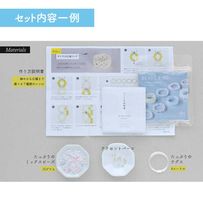 商品名:MIYUKI ビーズキット ビーズリングキット クリアカラーミックス 品 番:hca31-3素 材:ガラス、ユリア樹脂、ナイロン詳 細:【キット内容】・ミックスビーズ ・メタリックパール ・テグス ・説明書 【ご用意いただくもの】 ・ハサミ ・ものさし ・つまようじ ・接着剤色であそぶ、ビーズリング。作り方の基本も掲載しているので、はじめての方にもおすすめです。 通すだけでできる簡単なものから、ちょっと手の込んだ広幅のデザインまで、細目から広幅まで選べる7種類のレシピ付き。 レシピやサイズによって異なりますが、1キットで約8〜10個のリングを作ることができます。 5色をミックスしたシードビーズはたっぷり15g入り!レシピをもとに、お好みの配色でリングを作ることができます。 透明感のある「クリア」は、こっくりとした深みのある色合いで、どこか上品な印象です。商品名:MIYUKI ビーズキット ビーズリングキット クリアカラーミックス 素 材:ガラス、ユリア樹脂、ナイロン詳 細:【キット内容】 ・ミックスビーズ ・メタリックパール ・テグス ・説明書 【ご用意いただくもの】 ・ハサミ ・ものさし ・つまようじ ・接着剤