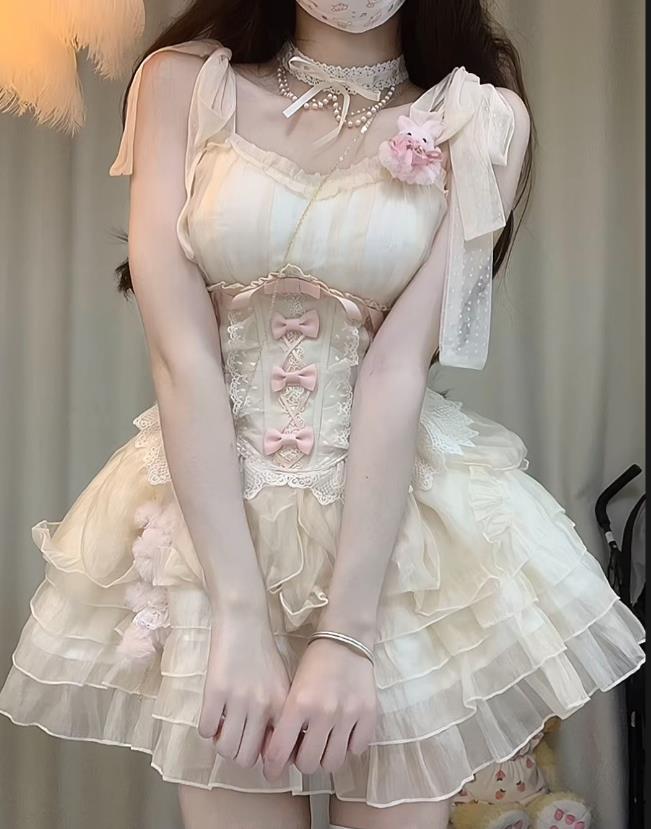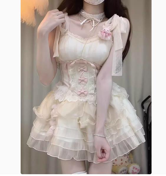 サマースウィートロリータ 仙气春夏ワンカラーゴスロリワンピース ロリィタ JSKOP Lolita ロリータ コスプレ 日常服ゴスロリワンピース人形師 レディースフリルレース ワインカート 可愛いお嬢様姫系少女ワンピドレススプリンセスポンポンスカートキャミソールスカート