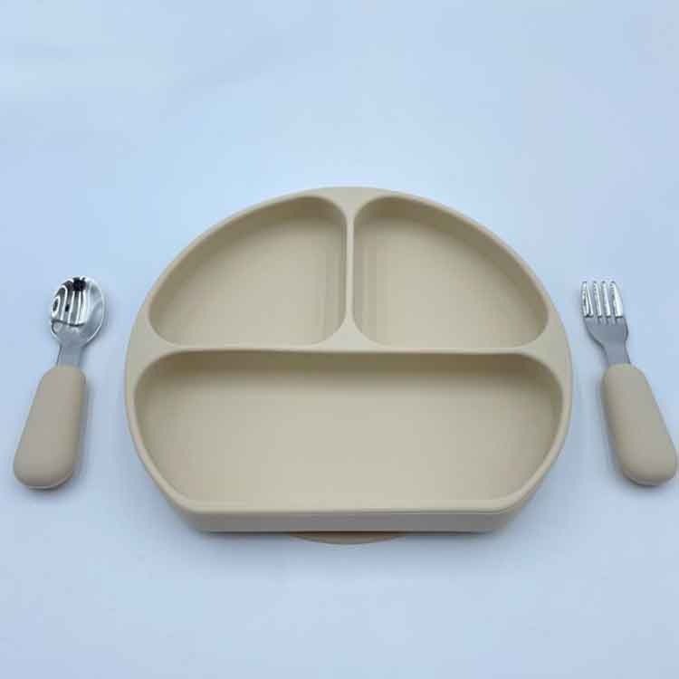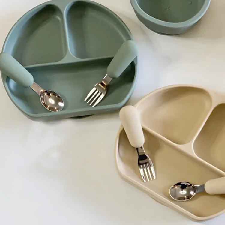 吸盤付きシリコンプレート&スプーン&フォークセットの3点セットです。高品質な食品用シリコン製で、お子様の食事に安全・安心な素材を使用しています。吸盤付きのプレートは、テーブルに固定されるのでひっくり返さずに食事ができます。3つにセパレートされたスペースに盛り付けが可能。スプーン、フォークなど一人食べの練習にもオススメです。電子レンジ、食洗器、冷蔵庫、そのまま冷凍庫のご使用も可能です。 ●製造ロットにより、細部形状の違いや、同色でも色味に多少の誤差が生じます。 ●パッケージは改良のため予告なく仕様を変更する場合があります。 ▼商品の色は、撮影時の光や、お客様のモニターの色具合などにより、実際の商品と異なる場合がございます。あらかじめ、ごください。 ▼生地の特性上、やや匂いが強く感じられるものもございます。数日のご使用や陰干しなどで気になる匂いはほとんど感じられなくなります。 ▼同じ商品でも生産時期により形やサイズ、カラーに多少の誤差が生じる場合もございます。 ▼他店舗でも在庫を共有して販売をしている為、受注後欠品となる場合もございます。予め、ごお願い申し上げます。 ▼出荷前に全て検品を行っておりますが、万が一商品に不具合があった場合は、お問い合わせフォームまたはメールよりご連絡頂けます様お願い申し上げます。速やかに対応致しますのでご安心ください。 メーカー希望小売価格はメーカーカタログに基づいて掲載しています