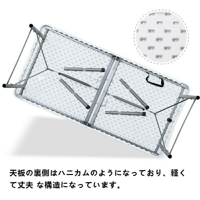 【簡単組み立て】工具を使わず、簡単組み立て!防汚機能もしっかり、お手入れ簡単!持ち運びに便利な持ち手付。折り畳み式のデザイン、サイドロック、ハンドルにより、使用していないときでも持ち運びやクローゼットに簡単に保管できます。屋外でのアウトドアにも最適で、折りたためば車の後部座席やトランクにも収納できます。【頑丈設計】天板は強化プラスチック製で、ハニカム構造になっているので丈夫で軽く、お手入れも簡単です。耐荷重:約200kg。【アウトドアの必須品,多用途】1台有ると便利な折りたたみ式の作業テーブル! 日曜大工や園芸の作業台に! 農作業や内職の作業台に!キャンプやバーベキューのアウトドアテーブルに!◆【注意事項】※製品更新により、予告なしで同じ商品がデザイン、色若干変わる場合がございますので、予めご下さい。※撮影の為、画質等の関係上、色などが実際の商品と若干違ってしまうこともあるかもしれませんがご理解のほどご購入ください。予めごください。※更新のタイミングによっては実在庫に相違が出る場合がございます。※万が一商品に不具合がある場合は、無償交換・返金は可能です。マイナス評価する前にご遠慮なく当店と連絡してください。 メーカー希望小売価格はメーカーカタログに基づいて掲載しています