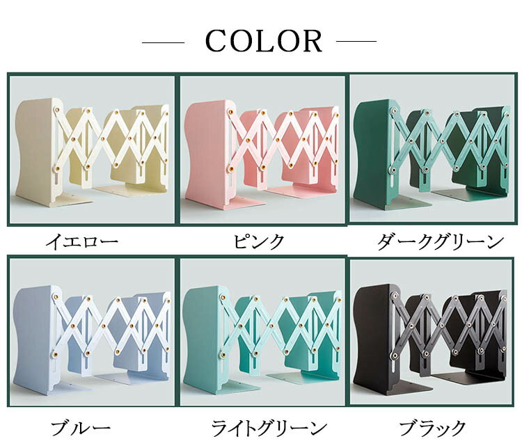 ■商品名ブックスタンド 卓上 おしゃれ 折りたたみ 伸縮 本立て 教科書 倒れない 収納 デスク 机上 収納用品 事務用品 仕切り■商品コード■カラーブラック/イエロー/ライトグリーン/ブルー/ピンク/ダークグリーン メーカー希望小売価格はメーカーカタログに基づいて掲載しています
