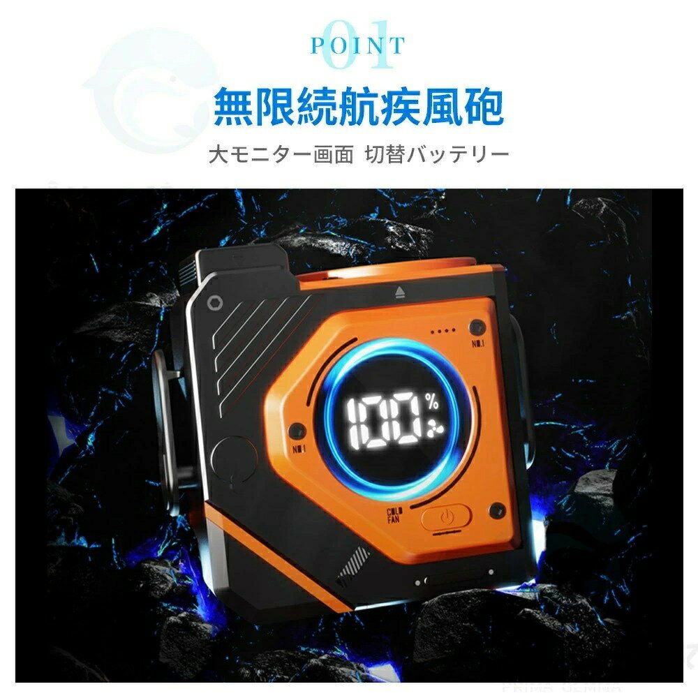 商品仕様 重さ 約386g 素材 ABS樹脂、アルミニウム 電池容量 5000mAh / 9800mAh 風量 3段階 サイズ 約105 × 100 × 72mm 電池充電時間 約3〜5時間 注意事項1 充電中の使用は不可 注意事項2 電池保護のため、長時間使わない場合でも2ヵ月ごとに1回充電が必要 注意事項3 電圧電流保護のため、充電後はケーブルを抜き、ディスプレイ消灯後(約10秒)、電源ボタン長押しで正常使用開始 注意事項4 製品更新により、予告なしでデザインや色が若干変更される場合あり 注意事項5 撮影や画質の関係上、実物と色味が若干異なる場合あり