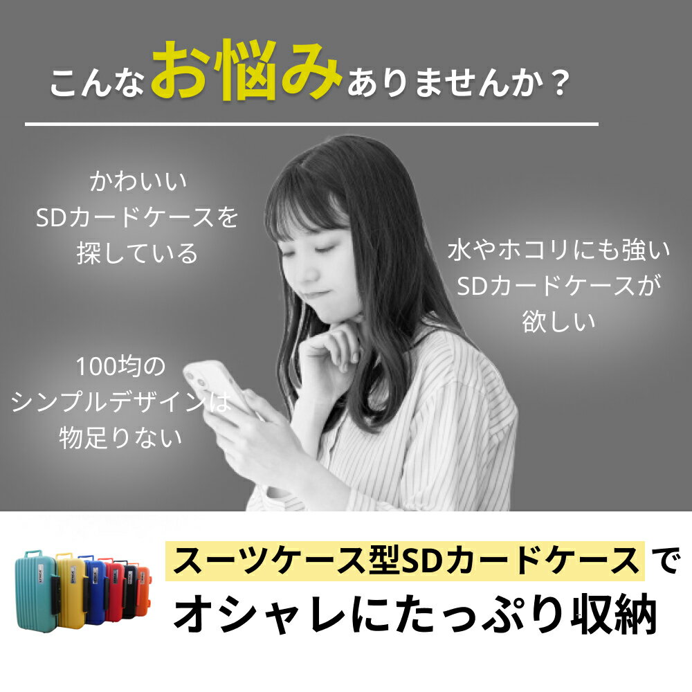 SDカードケース microSD カードケース スーツケース型 メモリーカードケース 大容量 最大24枚 SDカード 8枚 microSDカード 12枚 CFカード 4枚 耐衝撃 防水 防塵