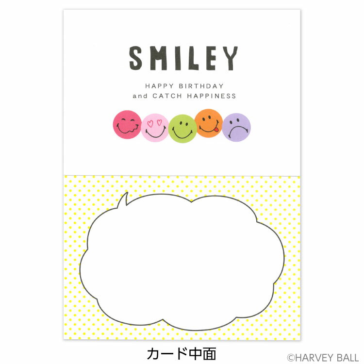 ついついつられて笑顔になっちゃうSMILEYのシリーズ! 笑顔と元気溢れるステーショナリーをお楽しみください。 スマイリーの顔がバネで揺れる楽しいしかけ付きのカードです。 「バースデー」 サイズ:カード150×105mm/封筒165×115mm 素材:紙/定型内