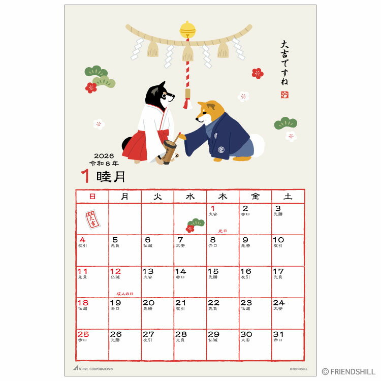人気の柴田さんのカレンダーです。 一言入りで、柴田さんと一緒にのんびりと一年を過ごせます。 予定が書き込みやすく実用的なカレンダーです。 六曜入り サイズ 200×295mm/13枚つづり 素材:紙